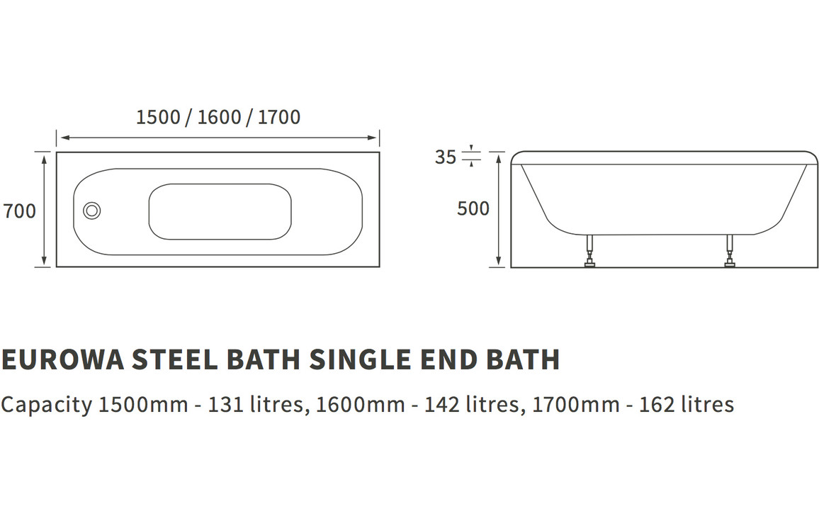 Eurowa Steel Single End 1700×700 2TH Bath (No Legs)