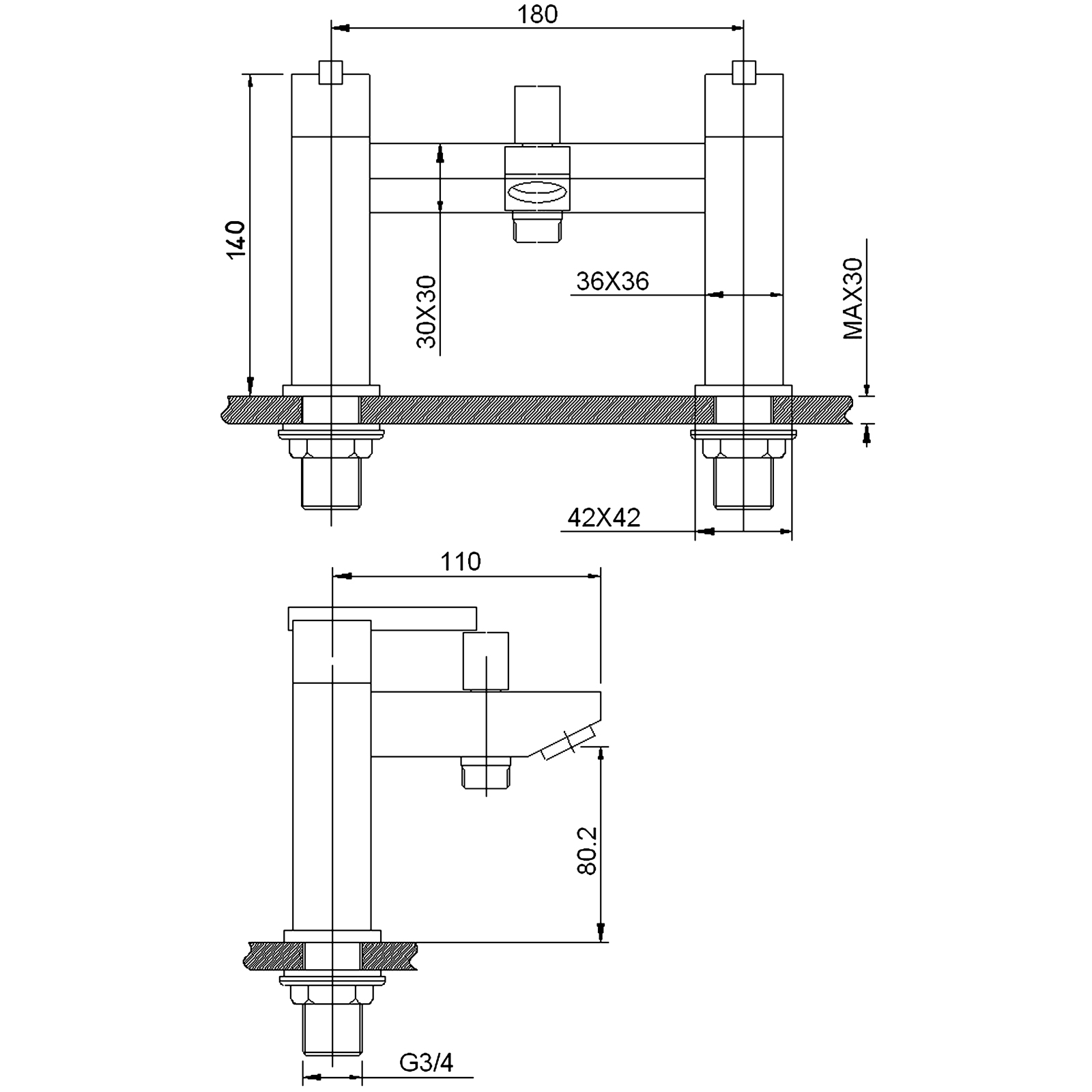 Square Bath Shower Mixer.